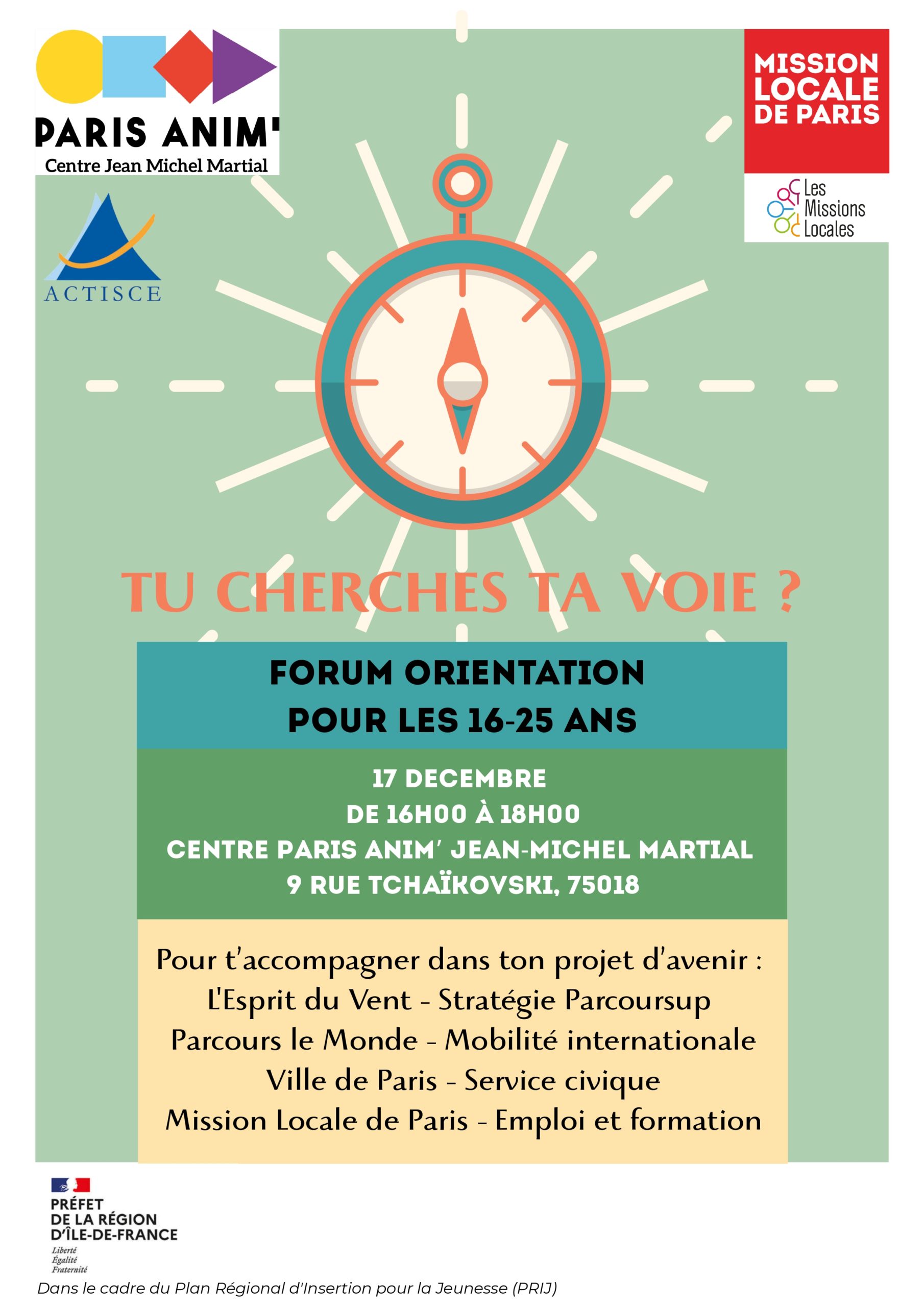 Événements Site : Antenne AFPA - 112 avenue Philippe Auguste 75011 Paris Avenir - 24/26 rue de Châtillon - 75014 Paris Centre - 29/31 rue des Boulets - 75011 Paris Est - 65 rue d'Hautpoul - 75019 Paris France Terre d'Asile- 48 rue du professeur gosset-75018 Paris Milord - 9 impasse Milord - 75018 Paris Pajol - 22 rue Pajol - 75018 Paris Pyrénées - 3 rue de l'Est - 75020 Paris Quartier Jeunes - 4 place du Louvre - 75001 Paris Soleil - 93 rue Jeanne d'Arc - 75013 Paris Type d'événement : Coaching Conférences DECOUVERTE DES METIERS DE LA REPARATION D’ELECTROMENAGER AVEC FNAC-DARTY Découverte métiers Événements institutionnels Événements sportifs Forum & Salon Job Dating Obtiens ton code de la Route avec l’AFPA Représentation théâtrale Séminaires Vie de site Visite entreprise Tag : 2024 BAFA Populaire Métiers en tension Quartier Entreprises Quartiers d'été Rechercher Réinitialiser 7 événements à venir Vue cartouche Vue en liste Vue en carte Découverte métiers RDV de la formation avec ” Les Déterminés ” L’hôtellerie-restauration de luxe Quartier Jeunes - 4 place du Louvre - 75001 Paris Le 06.01.2026 13:30 - 17:00 Hôtellerie-Restauration, Tourisme, Loisirs et Animation Formation Découverte métiers RDV de la Formation / Les métiers de la Vente alimentaire Milord - 9 impasse Milord - 75018 Paris Le 07.01.2026 14:00 - 15:00 Commerce, Vente et Grande distribution Formation courte Farouk HAMADOUCHE Découverte métiers RDV de la Formation / Les Métiers du Vélo Milord - 9 impasse Milord - 75018 Paris Le 07.01.2026 15:00 - 16:00 Installation et Maintenance Formation courte Farouk HAMADOUCHE Découverte métiers TRAVAILLER DANS L’HÔTELLERIE DE PLEIN AIR A PARTIR D’AVRIL 2026 EN SE FORMANT COMME EMPLOYE POLYVALENT DE RESTAURATION + BAR ! 4 Place du Louvre, 75001 Paris, France Le 09.01.2026 13:45 - 16:30 Hôtellerie-Restauration, Tourisme, Loisirs et Animation Formation, Information métiers, et Recrutement David HERRY Visite entreprise De la Capoeira à l’emploi Centre Paris Anim Angel Parra-181-183 Rue Vercingétorix, 75014 Paris Métro 13 Plaisance- Tramway porte de Vanves Le 13.01.2026 10:00 - 13:30 Services à la personne et à la collectivité Préparation à l’emploi Rudy HARAL Coaching, Découverte métiers, et Forum & Salon DECOUVRIR LES METIERS DE L’HÔTELLERIE en S’IMMERGEANT DANS L’UNIVERS HÔTELIER de LUXE 4 Place du Louvre, Paris, France Le 15.01.2026 13:30 - 17:00 Hôtellerie-Restauration, Tourisme, Loisirs et Animation Information métiers David HERRY Découverte métiers et Forum & Salon Forum Orientation – CPA Martial 9 Rue Tchaïkovski, 75018 Paris Le 17.01.2026 16:00 - 18:00 Formation, Forum, Salon, Information métiers, et Mobilité Myriam BENSAAD et Assouane SAIM Titre Type d'événement Localisation Dates Date de publication Pilotes RDV de la formation avec ” Les Déterminés ” L’hôtellerie-restauration de luxe Découverte métiers Quartier Jeunes - 4 place du Louvre - 75001 Paris Le 06.01.2026 13:30 - 17:00 12.12.2025 RDV de la Formation / Les métiers de la Vente alimentaire Découverte métiers Milord - 9 impasse Milord - 75018 Paris Le 07.01.2026 14:00 - 15:00 02.12.2025 Farouk HAMADOUCHE RDV de la Formation / Les Métiers du Vélo Découverte métiers Milord - 9 impasse Milord - 75018 Paris Le 07.01.2026 15:00 - 16:00 02.12.2025 Farouk HAMADOUCHE TRAVAILLER DANS L’HÔTELLERIE DE PLEIN AIR A PARTIR D’AVRIL 2026 EN SE FORMANT COMME EMPLOYE POLYVALENT DE RESTAURATION + BAR ! Découverte métiers 4 Place du Louvre, 75001 Paris, France Le 09.01.2026 13:45 - 16:30 04.12.2025 David HERRY De la Capoeira à l’emploi Visite entreprise Centre Paris Anim Angel Parra-181-183 Rue Vercingétorix, 75014 Paris Métro 13 Plaisance- Tramway porte de Vanves Le 13.01.2026 10:00 - 13:30 17.12.2025 Rudy HARAL DECOUVRIR LES METIERS DE L’HÔTELLERIE en S’IMMERGEANT DANS L’UNIVERS HÔTELIER de LUXE Coaching, Découverte métiers, et Forum & Salon 4 Place du Louvre, Paris, France Le 15.01.2026 13:30 - 17:00 18.12.2025 David HERRY Forum Orientation – CPA Martial Découverte métiers et Forum & Salon 9 Rue Tchaïkovski, 75018 Paris Le 17.01.2026 16:00 - 18:00 12.12.2025 Myriam BENSAAD et Assouane SAIM
