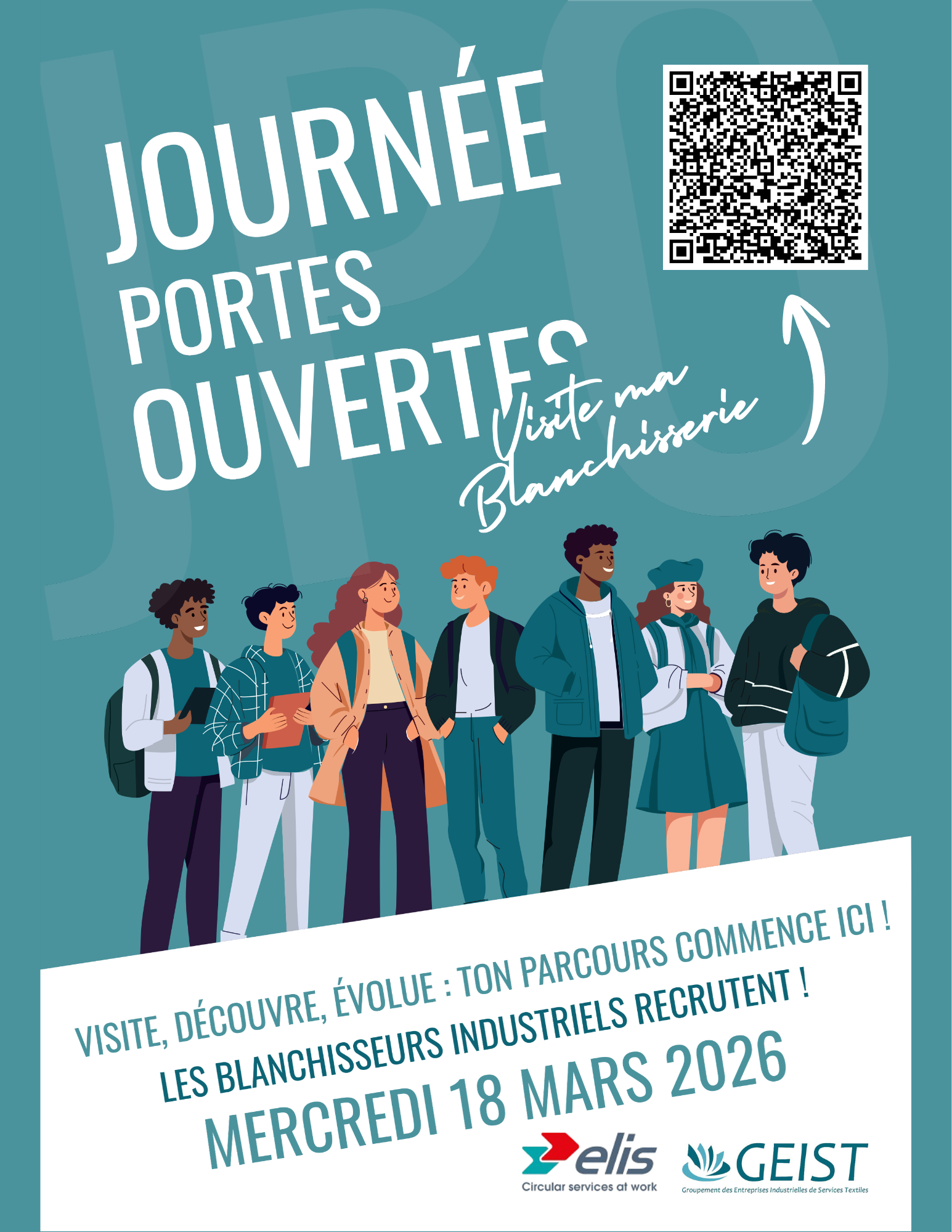ELIS : Journée Portes Ouvertes – Visite ma blanchisserie | 18 mars Paris / Nord Ouest Description : ELIS organise dans le cadre de l’opération nationale « Visite ma blanchisserie », une journée portes ouvertes le 18 mars sur les sites de Nanterre Paris Ouest et Gennevilliers. Cette journée s’inscrit principalement dans un objectif de recrutement (poste disponible dans toutes l’Ile de France). 📌 L’Inscription est obligatoire via le formulaire suivant : https://docs.google.com/forms/d/e/1FAIpQLSeQrxBf87jFs9TUKNg9uWXACW0f8CtBpwYuadITZRZZLNsmwg/viewform?usp=header Déroulement : Au programme : Découverte des activités et des métiers Visite de l’usine en immersion Échanges avec les équipes Opportunités d’emploi (dépôts de CV) Pilotes de l'événement : Gladys BOISSERON Thématique : JPO Journées "Portes ouvertes" Domaine : Industrie Dates : 18.03.2026 - 10:00 - 17:00 Adresse : Gennevilliers, France Fichier à télécharger JPO Genevilliers Type : png Poids : 675.27 ko Télécharger JPO Nanterre Type : png Poids : 659.91 ko Télécharger Important pour les événements ouverts à inscription En vous inscrivant à cet événement, vous vous êtes engagé.e à y participer. Si vous êtes dans l'impossibilité de venir à ce rendez-vous, merci de vous désinscrire de l'événement via votre compte portail, ou de prévenir votre conseiller. Retour Inscrivez-vous à la Mission Locale de Paris Partager sur :